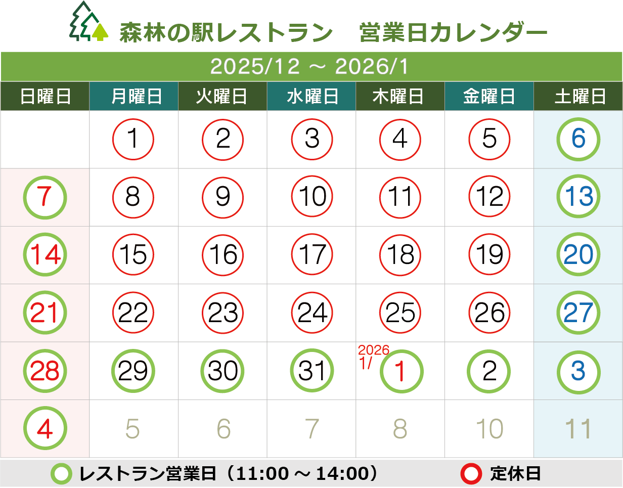 NEWS森林の駅レストラン営業【2025年12月~2026年1月4日】のご案内(2025.11.28)